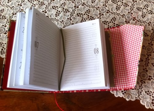 Bom dia!! Agenda 2014 tamanho 12 X 17 cm em papel e tecido alemães e fecho magnético. Um mimo...